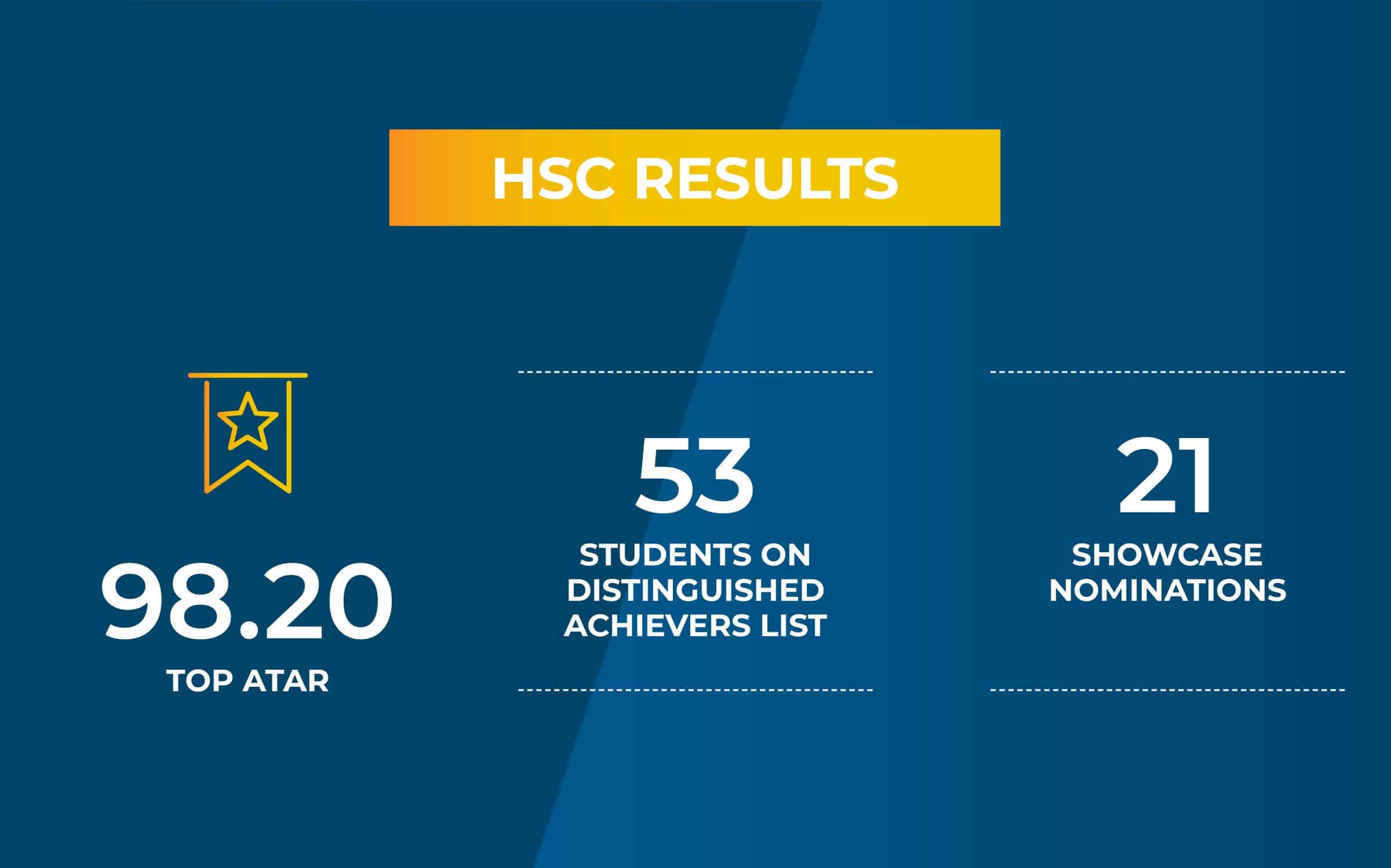 A total of 19% of NBCS graduates achieved an ATAR of 90 or above. 53 students were listed on the HSC Distinguished Achievers list for achieving at least one Band 6 result, and six students achieved Band 6 results in four or more courses.
