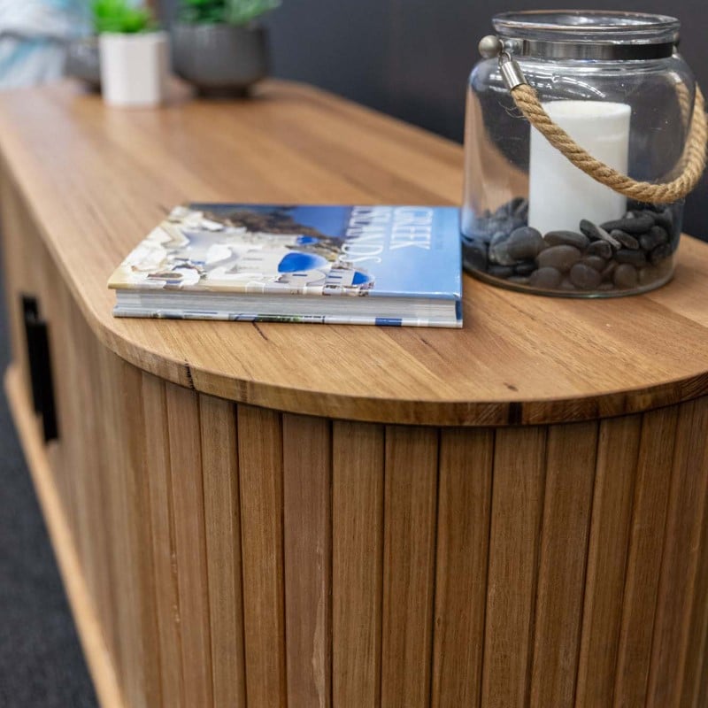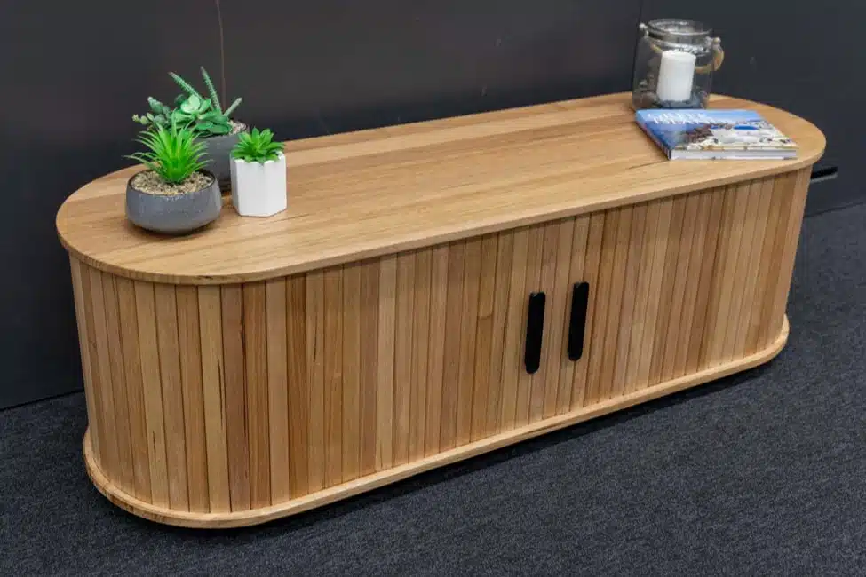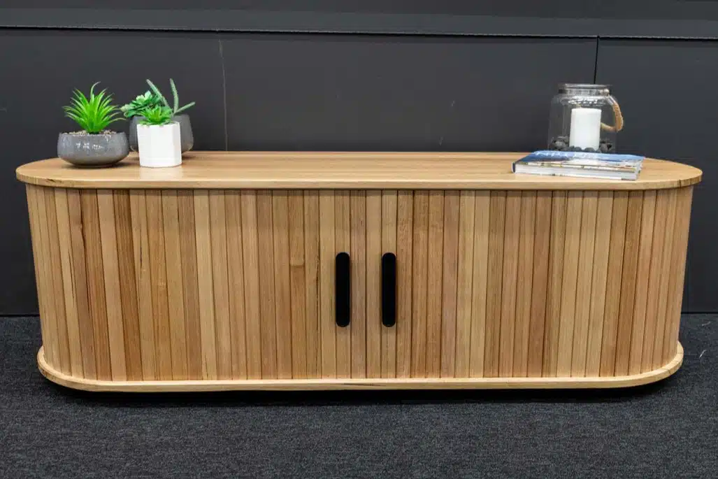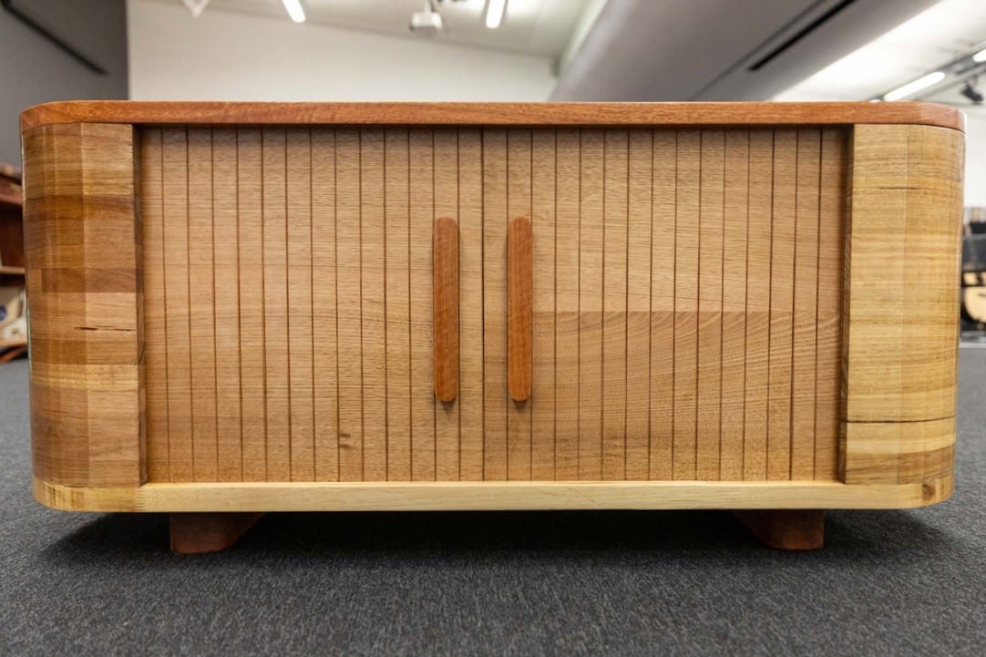 CURVED, TAMBOUR SLIDING DOOR CABINET