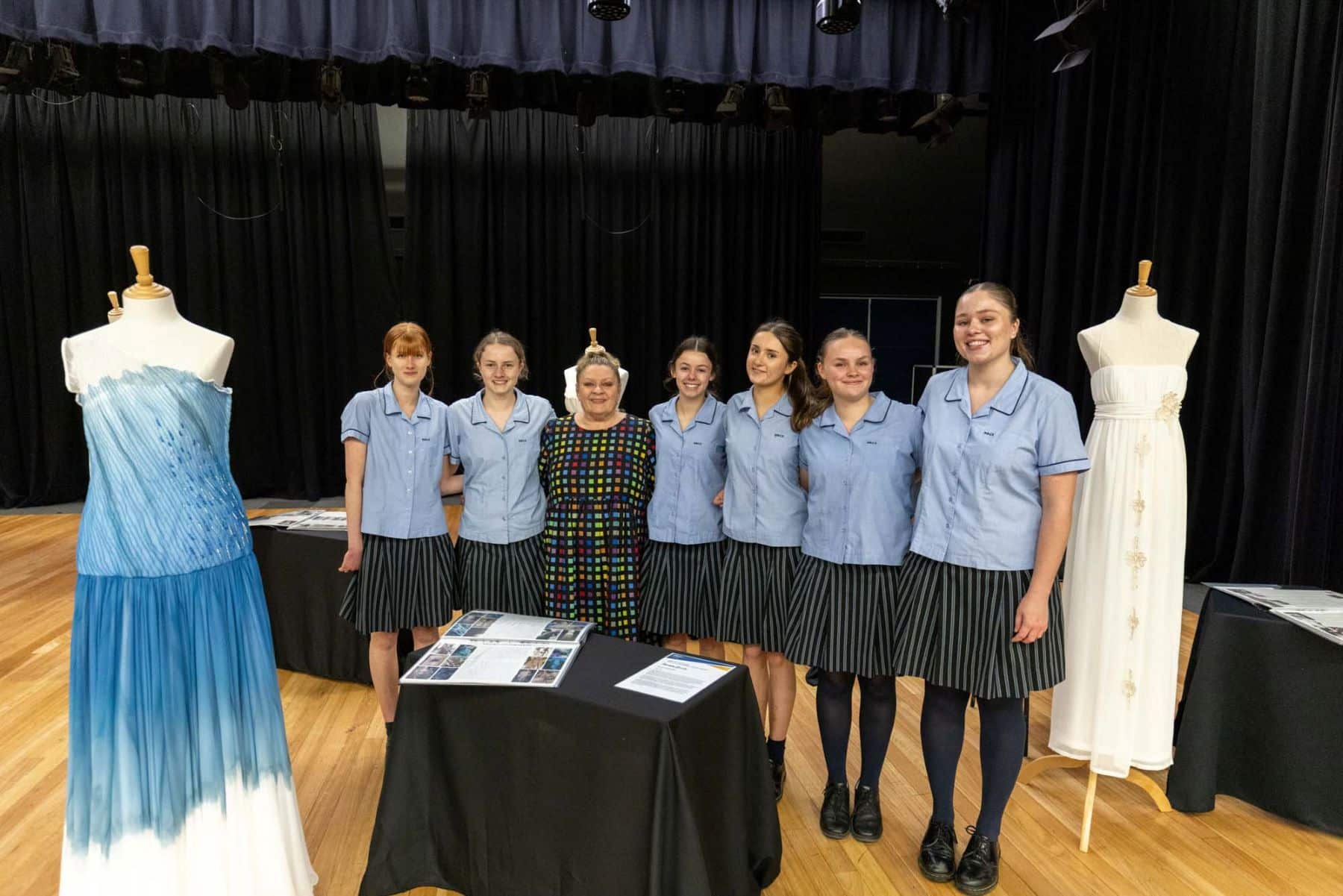 Images: Major works by the 2025 HSC Textiles and Design students, pictured above with Mrs Gray. All six were nominated for inclusion in SHAPE.